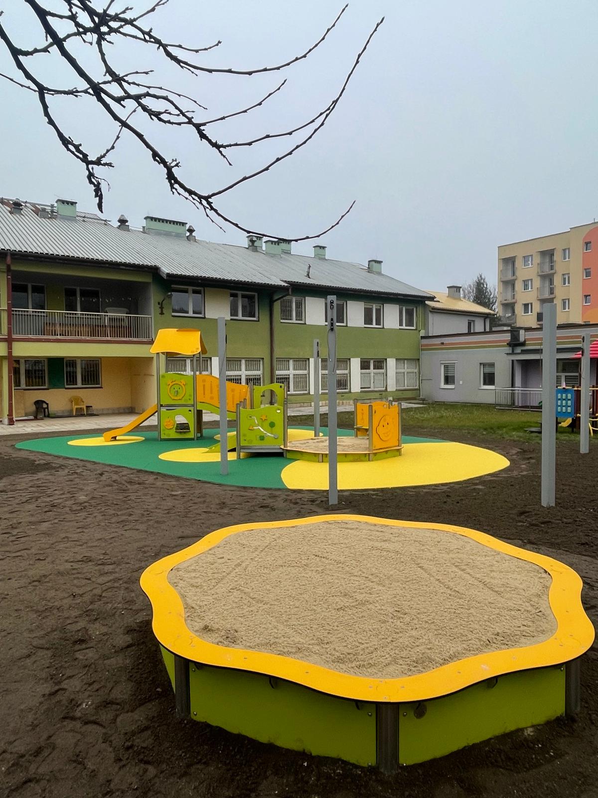 Zakres prac obejmował zaprojektowanie oraz wykonanie placu zabaw przy budynku żłobka.
